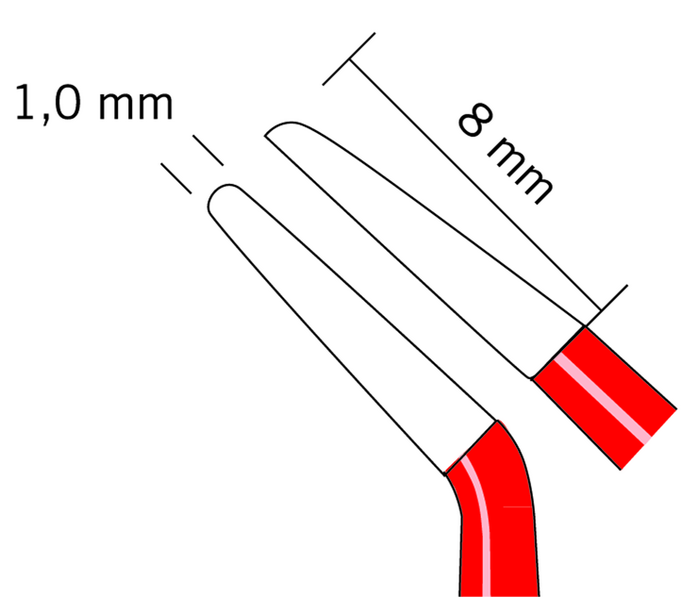Bipolare Pinzette, gewinkelt, stumpf, Spitzenbreite 1,0 mm, Länge 12 cm