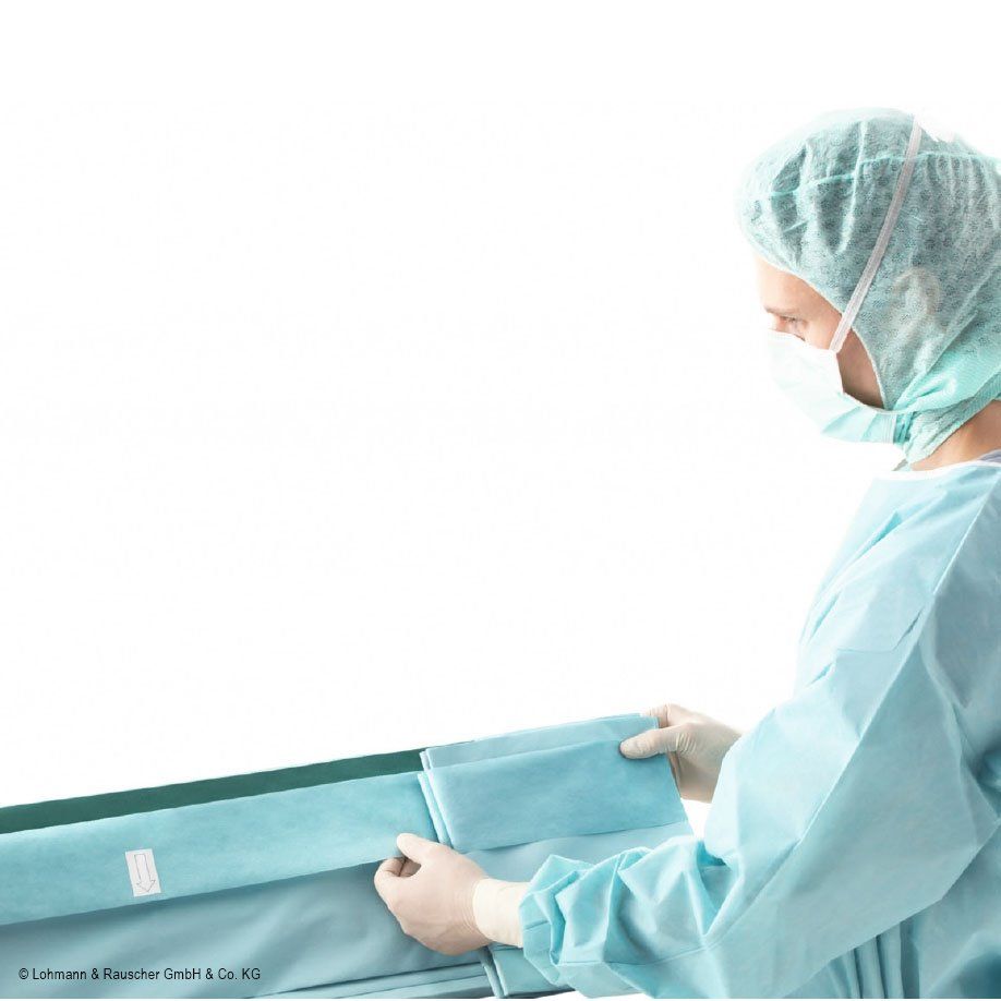 flüssigkeitsundurchlässige, gut drapierfähige, selbstklebende Abdeckung zur einfachen und sicheren Applikation am Patienten und Abgrenzung des OP-Feldes